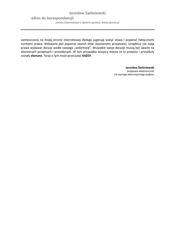Do korespondencji załączyłem pismo, które Zbigniew Zgud stwierdził że pozostawia bez rozpoznania (co jest złamaniem prawa). Skoro nie uznał to i tak SKUTECZNIE DRUGI RAZ GO DOŁĄCZYŁEM. Przypuszczam, że dla Zbigniewa Zguda będzie to szokiem – podejrzewam, że nie spodziewał się takiego kroku.